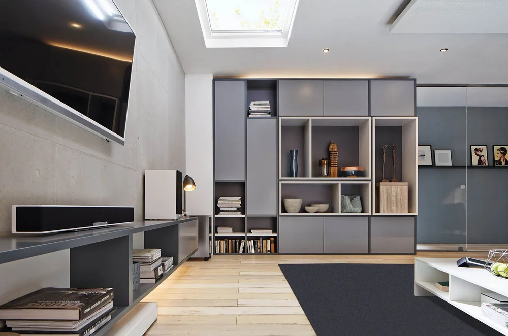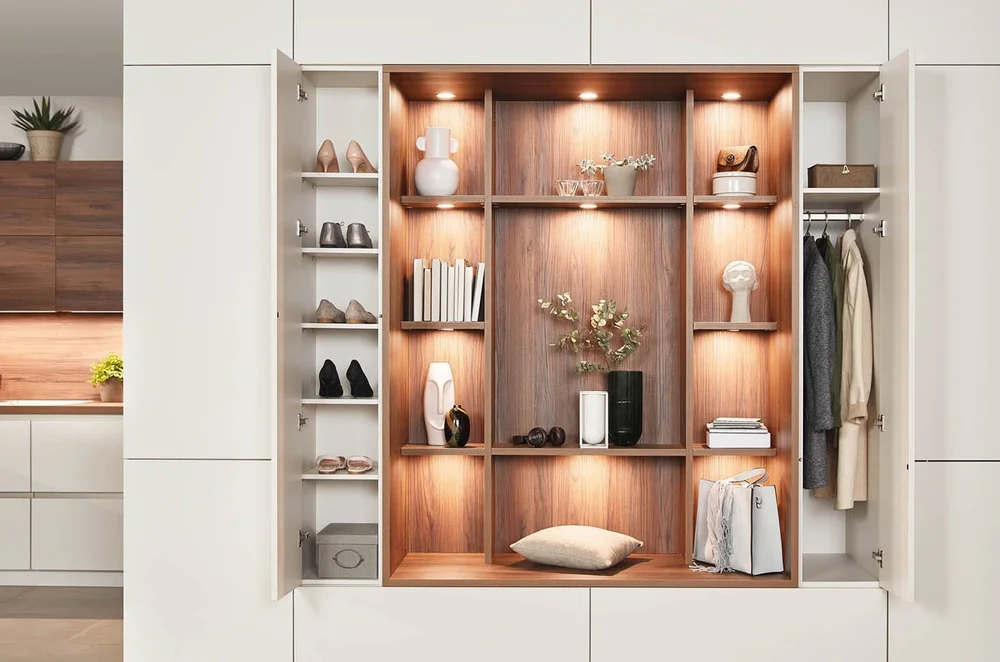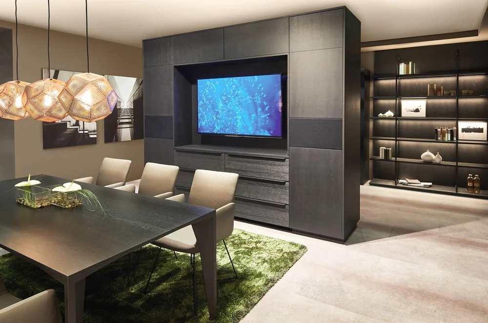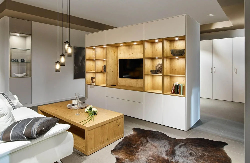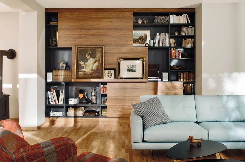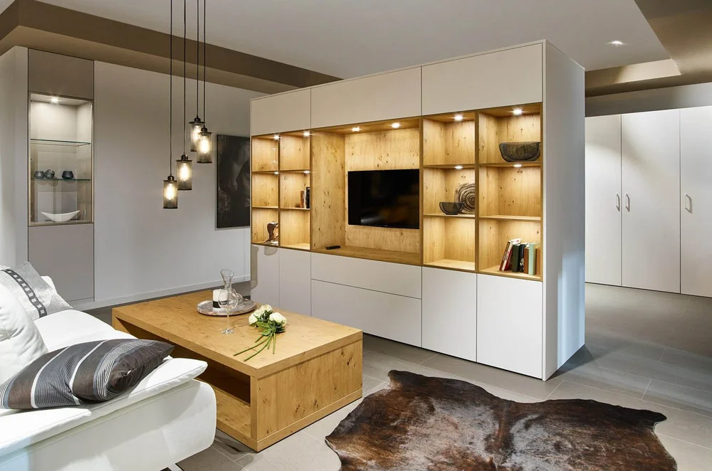 Umgib dich mit Dingen, die dir am Herzen liegen. Zwischen einem Tresor für deine wertvollsten Schätze und der großzügigen Fläche für TV und Soundbar schaffen wir stolzen Platz für deine liebsten, persönlichen Gegenstände. Maßgefertigte Schrankwände mit beleuchteten Fächern oder individuell anpassbaren, verschachtelten Regalen bringen deine schönsten Bücher, deine hart erkämpften Trophäen, deine Andenken, Kunstwerke, Sammlerstücke oder gerahmten Familienfotos voll zur Geltung. Sie schaffen in deinen Wohnräumen ein einzigartiges Ambiente, das dich widerspiegelt.
